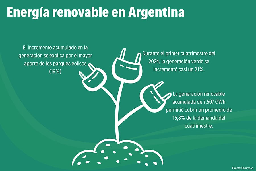En medio de este panorama, en Argentina las energías renovables han alcanzado otro récord histórico durante el primer cuatrimestre del año. El impacto de la nueva potencia instalada ha incrementado la generación verde en casi un 21%, de acuerdo al último informe mensual de la Compañía Administradora del Mercado Mayorista Eléctrico (Cammesa). El impulso del segmento hacia finales de 2023 no solo se mantuvo sino que se aceleró, permitiendo a la industria alcanzar la generación más alta para el período de análisis en el país.
