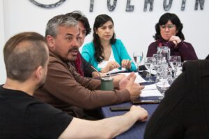 A la reunión asistieron el director de Obras y Servicios Públicos, ingeniero Cristian Amadeo Carreras Pereyra; y el gerente de la sede local de la DPOSS, Jorge Mele; quienes explicaron el convenio que establece un marco de colaboración a los fines de control recíproco respecto de la regularidad de pago de los usuarios y contribuyentes.