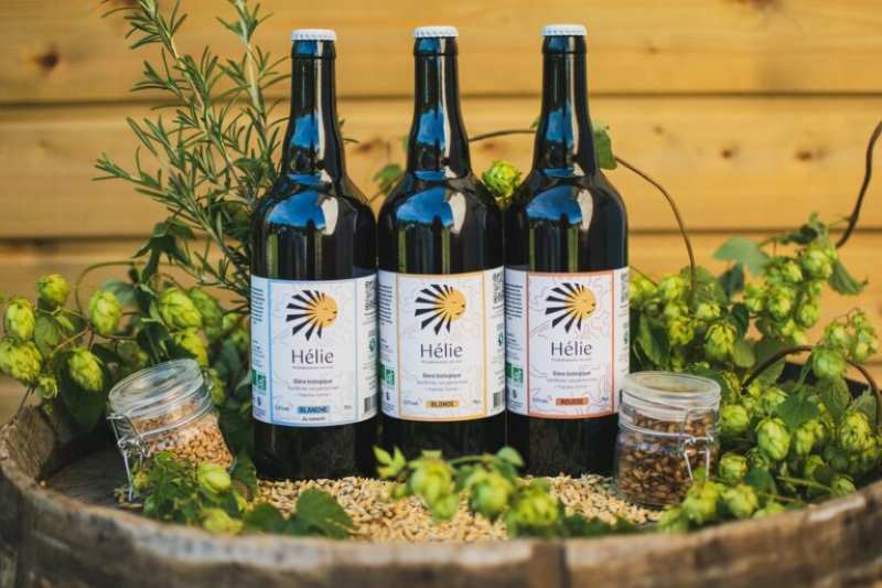 El proceso de elaboración de la cerveza en Hélie comienza con la maceración, donde el malt triturado se mezcla con agua caliente. Para mantener la temperatura constante necesaria, se utilizan tres paneles solares térmicos orientados al sur, que calientan un tanque aislado. La temperatura se ajusta mezclando con agua fría.
