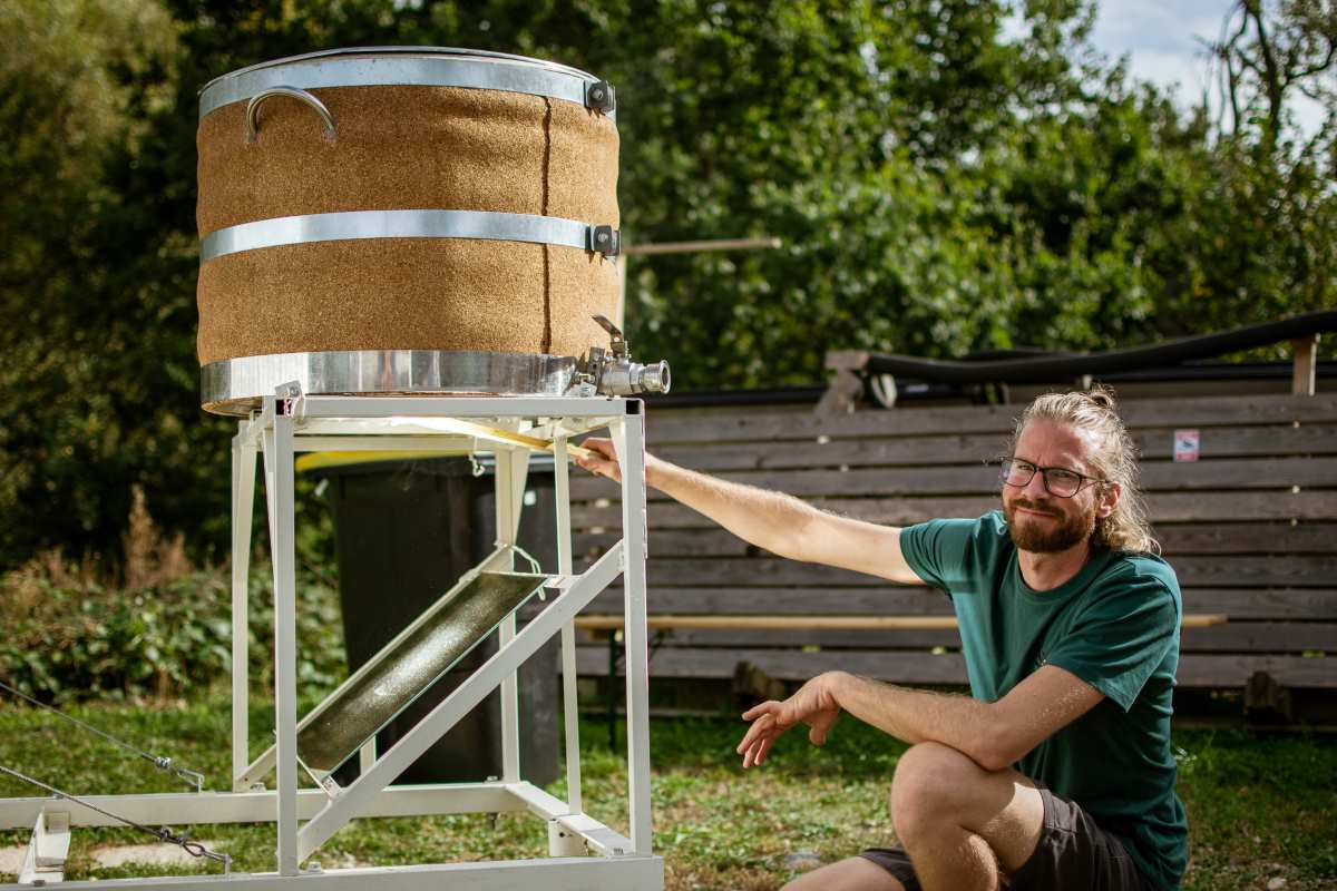 Después de la ebullición, el mosto se enfría rápidamente usando agua fría, que se recicla en el sistema de calentamiento, demostrando un uso eficiente del calor residual. La fermentación, que convierte los azúcares en alcohol, requiere una temperatura estable, actualmente mantenida con electricidad de la red. Sin embargo, se planea la instalación de paneles fotovoltaicos para cubrir esta necesidad en el futuro.