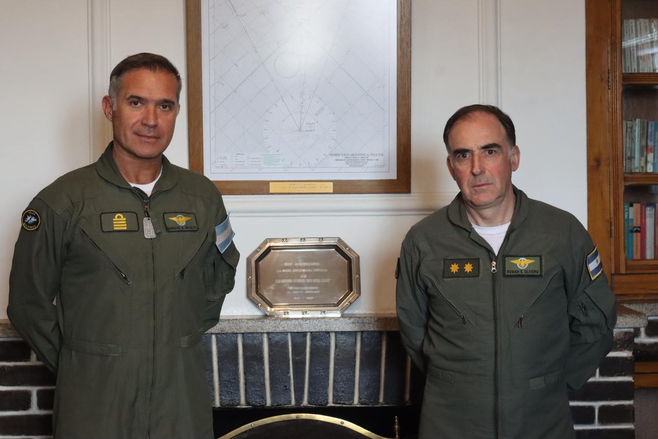 El Contraalmirante Román Olivero, Comandante de la Aviación Naval, y el Capitán de Navío Mariano Rivolta, Jefe de la Base Aeronaval Punta Indio.