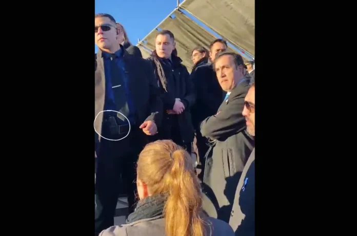 Como se puede observar en el video, un hombre con cara de malo (un lugar común en el que caen aquellos que no son custodios de profesión, sino improvisados, policías o particulares que se creen la reencarnación de James Bond) empujan e impiden el paso de funcionarios municipales, insisto, en un acto patrio, no precisamente en un acto político como el que desplegó Vidal mostrando un entorno violento y autoritario, con armas a la vista colgando de la cintura, como rememoran aquellas fotos y videos de Pablo Escobar Gaviglia rodeado de los killers que lo defendían con la vida, si era preciso.