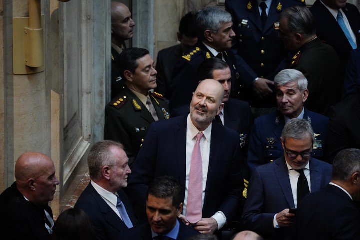 Macristas y libertarios departían animadamente antes que arrancara la exposición del Presidente. Acaso la presencia más celebrada desde las gradas fue la de la santafesina Romina Diez, que trajo una barra intensa. «Y ya lo ve, y ya lo ve, en Santa Fe, Romina Diez», coreaban.