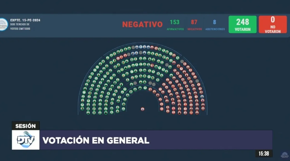 Los votos por la negativa de la sesión de junio se compusieron con 36 libertarios, 30 macristas, los 3 del MID. Las abstenciones habían sido del FIT, que esta vez se plegó al peronismo, y las sanjuaninas María de los Ángeles Moreno y Nancy Picón Martínez, miembros del bloque Producción y Trabajo, y la tucumana Paula Omodeo, del bloque Creo.