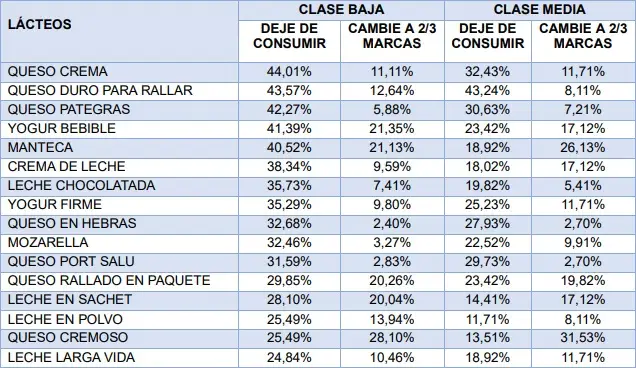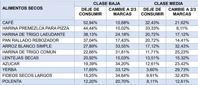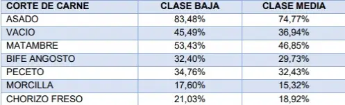 Por otra parte, al observar las diferencias en los consumos según la clase social a la que pertenecen los encuestados, el informe detectó diferencias considerables en algunos productos.