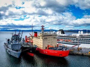 El Rompehielos Almirante Irizar, amarrado en el sitio 11 del Puerto de la ciudad de Ushuaia, se encuentra realizando el puente logístico con el Transporte Canal Beagle encargado de transportar al puerto de la ciudad de Buenos Aires los materiales y desechos que el “Coloso de los Hielos” provee y retira de las Bases Antárticas Argentinas en el marco de la Campaña Antártica de Verano 2023/2024.
